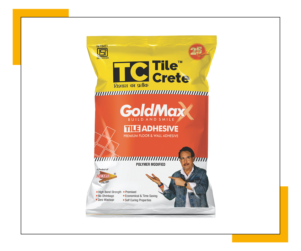 Tile Crete GoldMaxx Tile Adhesive is a Wonderful Mixture of Cement, Polymers, Natural Minerals and other Aggregates to Produce Adhesive When Mixed with Water. For Installation of Small to Medium Ceramic and Vitrified Tile on Internal Walls & External Flooring and Tile on Tile Application.